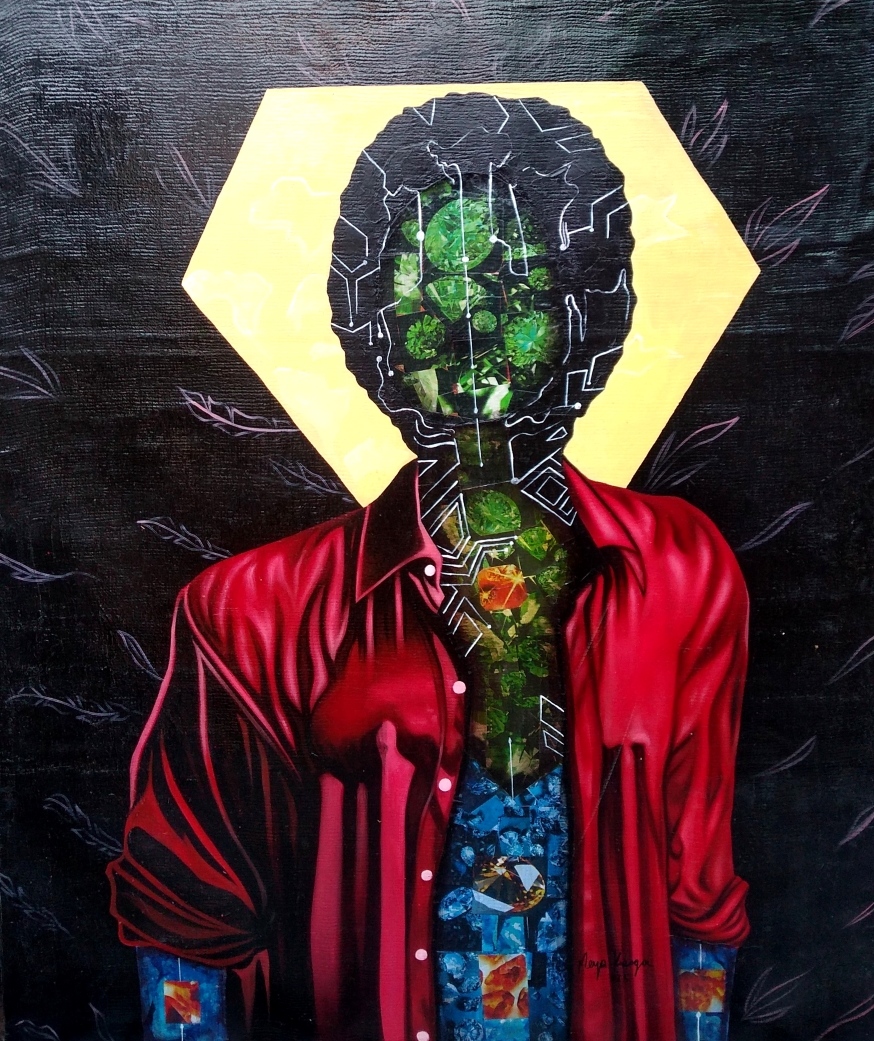 Artist: Meya Kanga Size: 130cm by 110cm Medium: Oil on Canvas, Multimedia